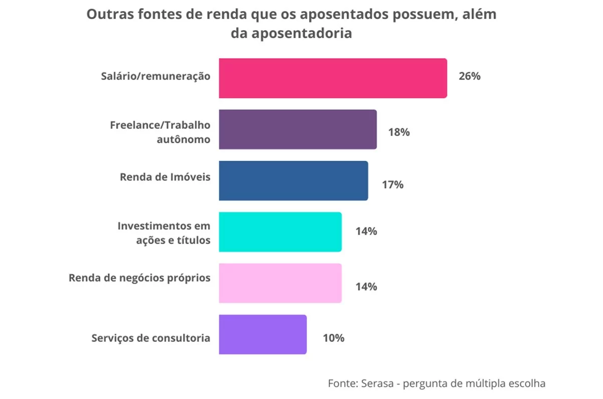 Trabalhar depois de se aposentar não é uma exceção, mas parte de uma nova regra. Segundo o levantamento, 60% dos aposentados continuam exercendo alguma atividade profissional. Em 63% dos casos, o motivo principal é complementar a renda. Manter uma vida mais ativa aparece como justificativa para 57% dos entrevistados, enquanto 32% dizem que seguem trabalhando para continuar se sentindo produtivos. Há ainda quem busque ajudar financeiramente a família, 23%, ou encarar novos desafios profissionais, 11%.