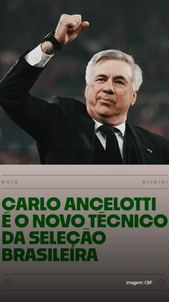 O acordo inicial com Carlo Ancelotti para comandar a seleção brasileira se estende até o final da Copa do Mundo de 2026.