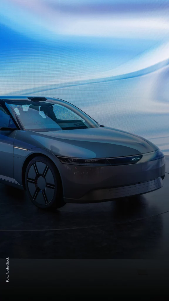 O Afeela impressiona não apenas pelo design moderno, mas também por suas capacidades tecnológicas. O veículo conta com 40 sensores distribuídos pela carroceria, conectividade 5G, mapas 3D interativos, dados salvos em nuvem acessíveis pelo celular.