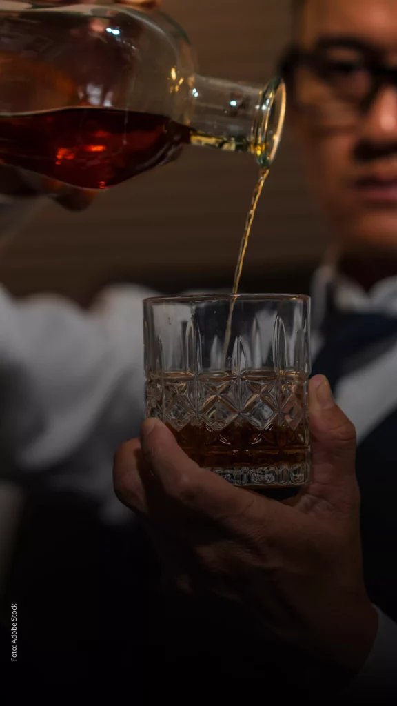 O whisky é uma bebida alcoólica destilada feita a partir de grãos fermentados, como cevada, milho ou centeio. Envelhecido em barris de carvalho, ele ganha sabor, cor e complexidade ao longo dos anos.