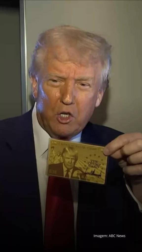 Trump anunciou o gold card durante uma conversa com jornalistas a bordo do avião presidencial Air Force One.